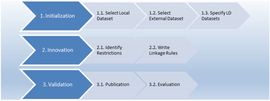 - Initialization: This step includes specifying requirements and business objectives and then analyzing the datasets used in LD generation. Moreover, it involves selecting vocabularies and developing other specifications for metadata description.
