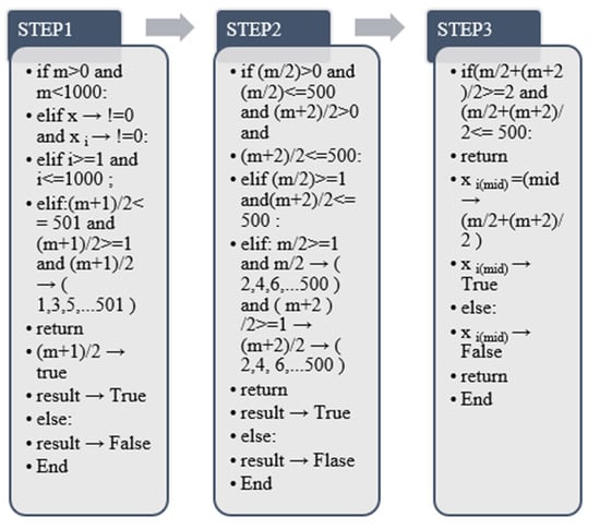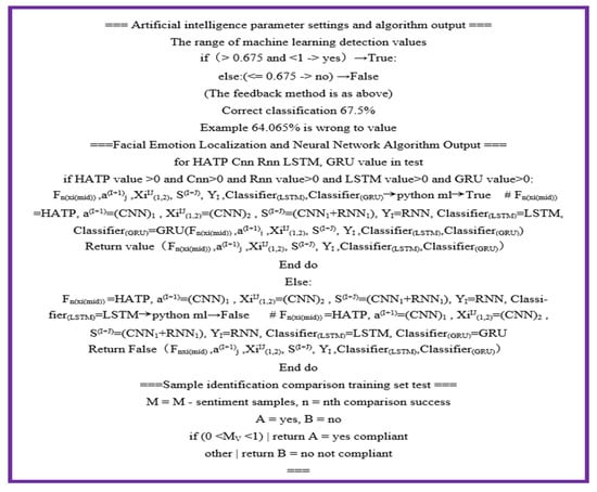 According to the algorithm output in Figure 5, the principle of this algorithm is to match and calculate through the characteristics of odd and even numbers. The calculation range is limited to 0–1000. (m + 1)/2 represents odd-numbered items, which are unary features after output, and m/2 + (m + 2)/2 are even-numbered features. According to changes in human behavior, the values of m/2 and (m + 2)/2 of even-numbered features will appear accordingly. The algorithm performs cumulative addition according to the given output mode and finally forms a sample dataset.