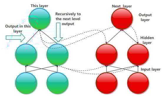 In this step, RNN is different from the convolutional neural network CNN algorithm []. Through the previous literature survey, it was found that the structure of RNN has a feedback function; that is, the output process is not limited to the next layer in this structure. After the level is over, it can recurse to the lower structure for feature transfer output mode. In addition to output in the current layer, the hidden layer in the RNN can also output at the next time point []. Figure 13 is the model structure diagram [] given according to the characteristics of the RNN algorithm, and the algorithm of this process [] is shown in Figure 14.