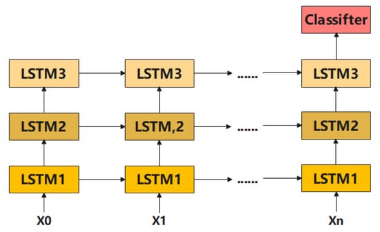 The LSTM algorithm is an important link in the memory network. This paper uses the LSTM algorithm to memorize and transmit data in the upper and lower parts of the time series. The LSTM algorithm is expected to use the matrix method, and the matrix method will use base 4 as the benchmark, and each matrix needs to be exponentiated during the bottom-to-top transmission process []. The method used in this paper is divided into three LSTM layers, and the LSTM in each layer adopts a one-way transfer. The data values of the 3 LSTM layers are calculated in 3 squares of 4 from bottom to top. The total number of vector sets will be 4 4 = 128 eigenvectors. The final output will be the probability of the corresponding action class. Figure 15 is the process model, and Figure 16 is the corresponding matrix algorithm [] output:
