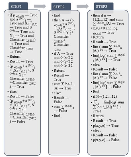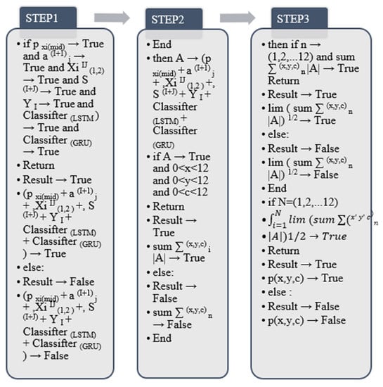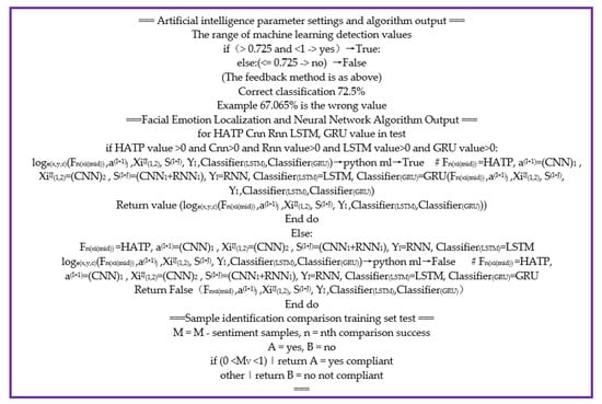 Because the previous machine learning algorithm adopted the logarithmic output method for different variables of x, y, and c to narrow the gap between the detection output eigenvalues in the calculation of mathematical formulas, this python improved algorithm needs to correspond to the above process []. The architecture of the improved python main program algorithm is similar to the process of machine learning. The three bases of x, y, and c are first weighted and summed and then squared to take the logarithm, which is the same as machine learning. The meaning of using the limit method is to maximize the log value based on the square root and calculate the sum of the characteristics that are closest to the 12 human behaviors. The final integration method is to control the output range and control the final output range within the range of features 1–12. The output processes x, y, and c correspond to (HATP, CNN), RNN, (LSTM, GRU), respectively. Therefore, the improved Python main control algorithm simultaneously adopts the summation of three groups of variables under the area of the corresponding algorithm and finally calculates it in the form of logarithmic output. Reduce the impact on other algorithms in the output process of different algorithms.