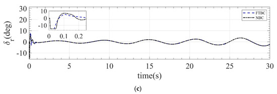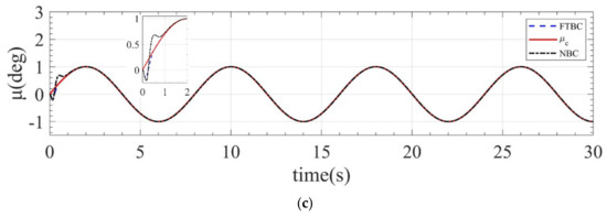 The parameters of the NBC controller listed in Table 3 are obtained based on the reference [30] and the trial and error method. The simulation conditions are identical to that in Section 4.1. The simulation results are shown in Figure 10, Figure 11, Figure 12, Figure 13 and Figure 14.