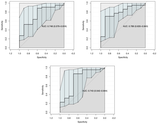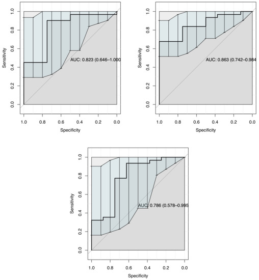 - Robin, X.; Turck, N.; Hainard, A.; Tiberti, N.; Lisacek, F.; Sanchez, J.C.; Müller, M.; Siegert, S.; Doering, M.; Billings, Z.; et al. Package ‘pROC’. Technical Report. Available online: https://cran.r-project.org/web/packages/pROC/pROC.pdf (accessed on 28 July 2022).