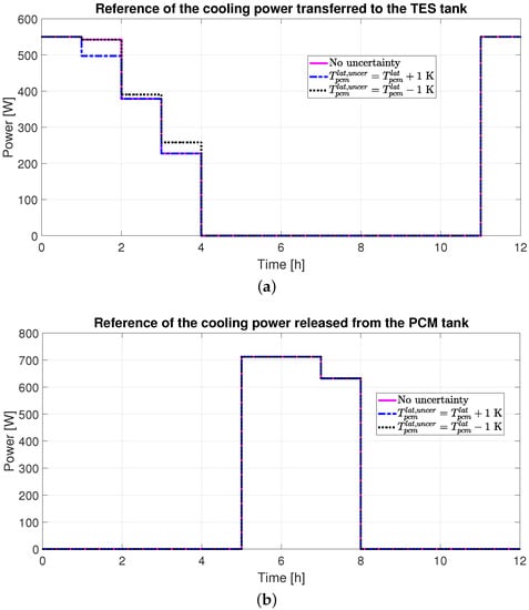 References of the TES charging/discharging cooling powers when some prediction model uncertainty is considered. (a) Reference on . (b) Reference on .