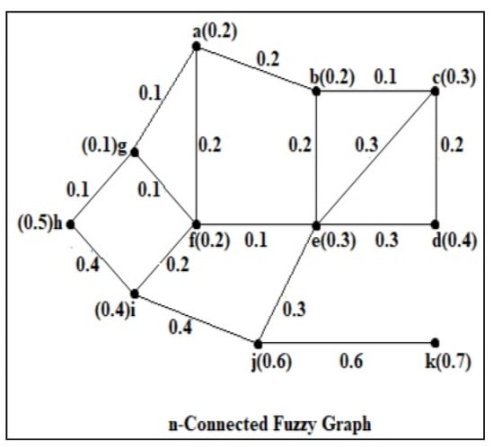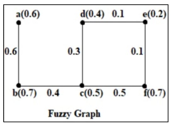 The crisp graph’s generalization is a fuzzy graph. Throughout this method, it is typical that a lot of the characteristics of a fuzzy graph approach those of a crisp graph while deviating widely in other areas. The initial definition of a fuzzy graph was proposed by Kauffman [] in 1973, and it was based on fuzzy relations that Zadeh [] had introduced. Rosenfeld [] introduced the idea of fuzzy graphs in 1975 based on Kauffman’s approach. He added a new, more thorough description of fuzzy graphs and established numerous findings using fuzzy graphs as an analogue to graph theory. Operations on fuzzy graphs were first introduced by Moderson and Nair [], but Sunitha and Vijayakumar [] expanded on this idea. The concept of fuzzy graph complement was described in ref. [], and various fuzzy graph operations were explored in ref. [].