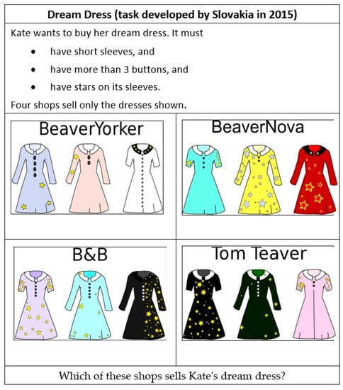 - Tomcsányiová, M.; Kabátová, M. Categorization of Pictures in Tasks of the Bebras Contest. In Informatics in Schools. Sustainable Informatics Education for Pupils of all Ages; Lecture Notes in Computer Science (including subseries Lecture Notes in Artificial Intelligence and Lecture Notes in Bioinformatics); Springer: Berlin/Heidelberg, Germany, 2013; Volume 7780, pp. 184–195. [Google Scholar] [CrossRef]