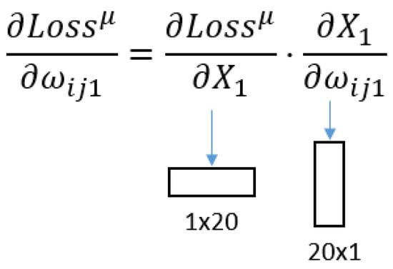 It is recognised that the synaptic weight of each layer can be calculated with Equation (5), where represents the synaptic weight of ith row and jth column on the layer n, t refers to the current step of the learning process, α to the learning ratio, and is the derivative of the loss function in relation to the pattern µ. Xn vector is the activation vector of the nth layer. The weight only has effect on ith component. So, the partial derivation of the activation vector has all null components except the ith component. This component, is equal to jth component of (n + 1)th activation vector. The momentum is avoided in the Equation (5) for simplicity.