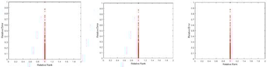 With this knowledge, the way in which the modulus fades out will be analysed. If the rank of any of the Jacobian matrix components of Equation (6) is zero or very low, the information is lost and the modulus will vanish, because the kernel dimensions of these Jacobian matrices are very high. If the dimensions of the kernel space of one Jacobian matrix are high, many vectors would have the null vector as their image. So, the error actualization is lost in such a matrix. Therefore, if in any of the Jacobians’ rank is null or very low, there will be a loss of signal between the (n − 1)th and nth layers. Thus, if is zero, then the error is null. In this case, the training algorithm has achieved the objective for the training pattern concerned. Finally, the last righthand term, is a column vector. All the components of this vector are null, except for ith component of the vector, which contains the jth activation of the nth layer. If the value of is null, the vanishing of error actualization occurs between the 1st and nth layers. In any case, if is composed mainly of 0 values and few elements with remarkable information, that layer could be a candidate for pruning in a future state of the training process [33]. This, however, is an aspect to be analysed in future works.