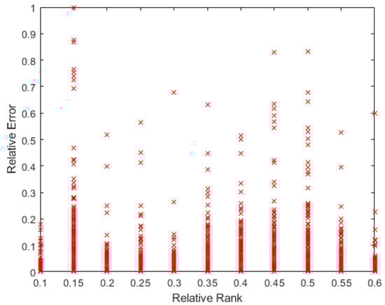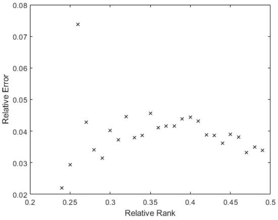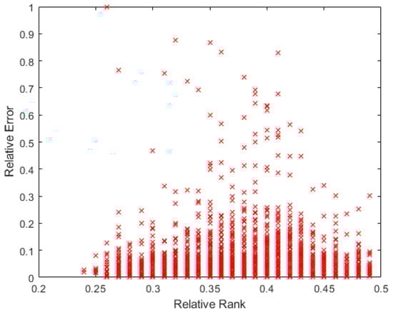 In the case of rank/error relationship of the ReLu layers, the situation is similar to the previous example, as the X2 layer has a positive trend according to the error, revealing once again that there is a pattern with a high error completely misaligned with the average of all the patterns in that layer. In the case of X4, the behaviour is equivalent to the original example. This can be seen in Figure 33 and Figure 34.