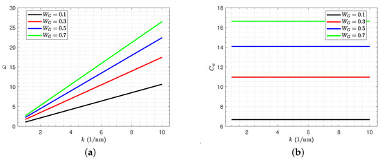 Influences of the wave number k and graphene weight fraction on wave frequency and phase velocity of the FG GPLs-reinforced sandwich piezoelectromagnetic plates with honeycomb core are plotted in Figure 4. It can be indicated that the wave frequency and phase velocity increase in a monotonic manner with increasing the graphene weight fractions because the composite plate strength increases with increasing the graphene components. Furthermore, the phase velocity seems to be independent of changing the values of wave number k. Moreover, the impacts of graphene weight fraction on are more considerable for large values of wave number k.