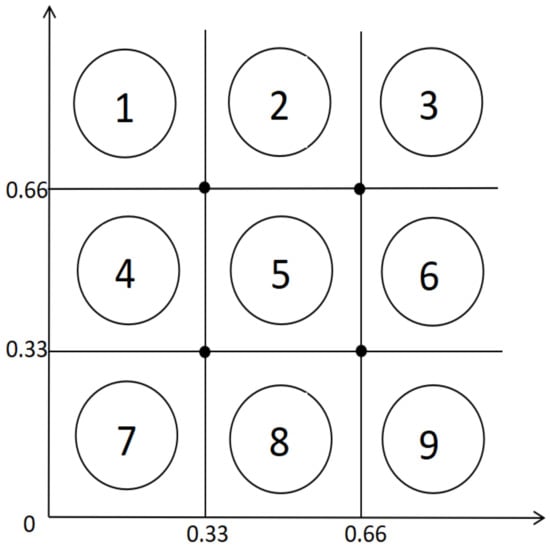 A simple example of dividing two dimensional region is shown in Figure 7 and nine divided regions are marked with numbers from 1 to 9.