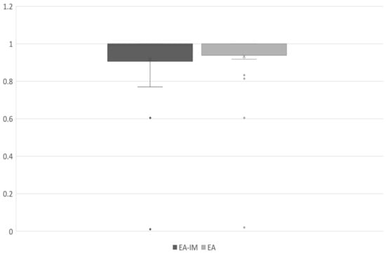 Comparison of EA-IM and EA on the Box-and-whisker Plot in terms of f-measure.