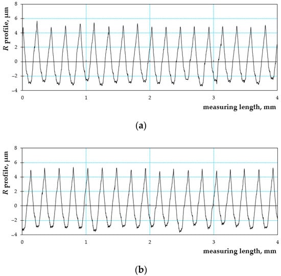 In this paper, the two most usual roughness parameters were measured: the Ra (arithmetic average height) parameter and the ten points height Rz (according to DIN, the average of the summation of the five highest peaks and the five lowest valleys along profile) parameter [44]. Measuring was done with Mitutoyo Surfest SJ 301 roughness tester for the measuring length of 4 mm, cut-off parameter 0.8, base length number N = 5 and measuring speed of 0.5 mm/s. In Table 3, some of the measured values are shown.