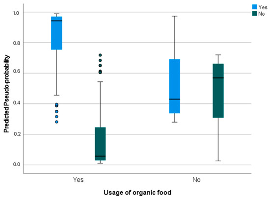 The dependent variable is the binary variable, measuring whether the respondents use organic food or not, in a dichotomous format.