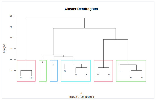 Using the method of hierarchical cluster analysis, we will divide into 6 clusters, which was recommended by the “silhouette” optimization method. Figure 8 shows the result.