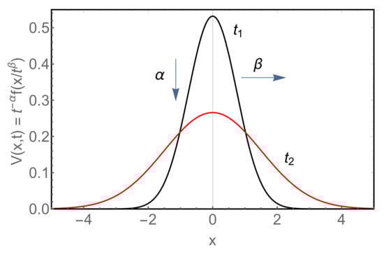 The most remarkable result of this ansatz is the Gaussian- or fundamental solution of the regular heat conduction equation (or for the regular diffusion equation) when ; this result is clearly presented in Figure 2. This applied Ansatz is based on the statement that a self-similar solution exists, and every physical parameter preserves its form during the expansion. Self-similar solutions in most cases explain the asymptotic behavior of an unbounded or a far-field problem; the space coordinate x and the time t appear only in the function of . This clearly means that the existence of the self-similar variables implies the lack of characteristic time and length scales. These kinds of solutions are in most cases not unique and do not take into consideration the initial stage of the physical process. The solutions of these kinds describe the so-called intermediate asymptotic of the investigated problem: they hold only when the precise initial conditions are no longer relevant, but before the system has achieved its final steady state. For some peculiar systems, it can be clearly shown that the self-similar solution fulfils the source type or (Dirac-delta type) initial condition. This is not the case. Self-similar solutions are much simpler than the full solutions and therefore are easier to understand and investigate in different domains of the parameter space. A final reason for studying these functions is that they are solutions of a system of ODEs and hence do not suffer from the full numerical problems of the initial PDEs. For some systems, self-similar solutions help us to understand the global properties of the process e.g., the existence of compact supports.