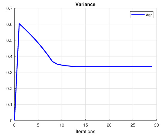 The investor’s primary purpose is to make a profit. A rational investor tries to choose the portfolio with the lowest risk that achieves this goal. To achieve this purpose, we create a mean-variance diagram with all of the conceivable hazardous asset portfolios, where the points indicate the returns and the risk (variance) of the portfolios. Figure 1 presents the convergence of the utility, Figure 2 shows the variance and Figure 3 plots the convergence of the functional. Figure 4 shows the convergence of the portfolio strategies.