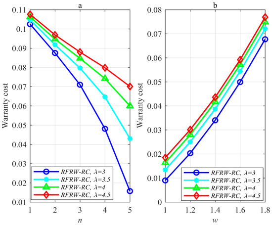 enhances the manufacturer’s charge, which can reduce the manufacturer’s warranty cost. Therefore, the former case occurred. The former signals that the warranty cost of RFRW-RC is a decreasing function with respect to the warranty term