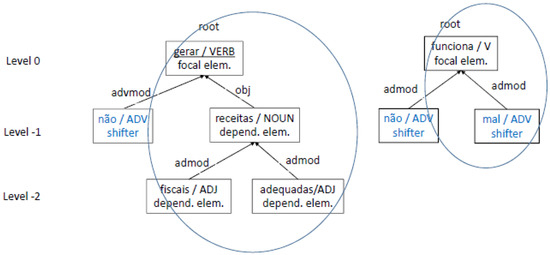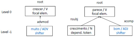 Therefore, we restrict the automatic approach to single words (unigrams). Phrases, such as crescimento alto (high growth), rely on shifter patterns that represent contextual shifters of the sentiment values of particular words or expressions. Schulder et al. [1,3] stated that content words, such as verbs, nouns and adjectives, can act as polarity shifters. In addition, adverbs, negative function words and modal verbs also act as polarity shifters.