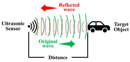 An ultrasonic sensor (also called sonar) is a device that makes use of the echolocation phenomenon to determine if an object is in the domain of the sensor. Figure 10 depicts the typical ultrasonic echolocation of the sensor [27]. The ultrasonic sensor can also determine the target distance by tracing the time for a signal to return to the ultrasonic sensor after it has been emitted. On the other hand, ultrasonic sensors have interference due to noise and blind zones in close proximity, which can lead to inaccurate readings [27]. Materials with high sonic wave absorption coefficients and damping capabilities, such as acoustic foam, might also affect ultrasonic sensor readings [93].