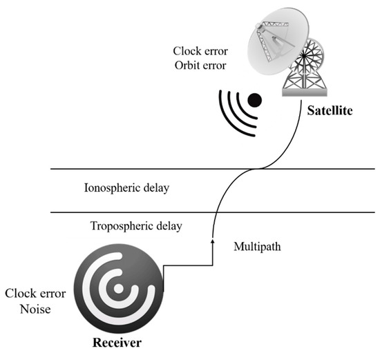 Whether aerial, land, or sea-based, all kinds of autonomous vehicles require a positioning system to locate their position. The global navigation satellite system (GNSS) is the most widespread technology used for this purpose. The GNSS relies on satellites orbiting the Earth at approximately 20,000 km from the Earth’s surface. The GNSS system emits a signal, and a receiver decodes this signal to extract the information of the receiver’s position, time, and speed. The Global Positioning System (GPS) is the most common GNSS system freely available to be used in any part of the world [111]. In addition to GPS, other commonly available GNSSs are GLONASS, GALILEO, and BEIDOU. Each requires input signals from at least four of the 12 available GNSS satellites to provide an accurate 3D position (x, y, z) information, along with the time-of-flight between transmitter satellites and receiver [112,113]. Changle Li et al. classified GPS errors into three main categories: GPS satellites, signal propagation, and error at the receiver’s end [29]. These categories were further elaborated by Sara et al. to monitor the GPS accuracy for AVs. In addition to the aforementioned errors, the refraction of the GPS signal in the atmospheric layer was mentioned to be a cause of error in GPS signal [114]. Figure 11 illustrates this phenomenon [114,115]. The same phenomenon was used by Catherine et al. for motion planning of AVs [115].