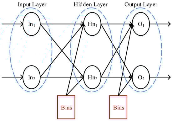 The fitness function is produced as in [30]. For an FNN with a structure as in Figure 2, the fitness function is calculated by following the steps outlined below, where n is the number of inputs, is the number of hidden layer nodes and is equal to the output number. To calculate each hidden node,