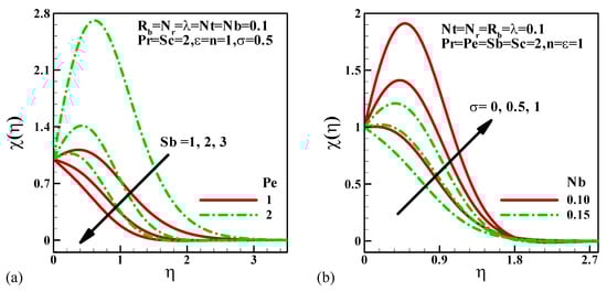 - Dimensionless motile microbe density decreases as the bio-convection Schmidt number rises, but rises when the Peclet number falls.