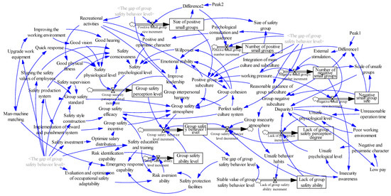 The above research results have laid a foundation for the correction of group safety behavior. The above studies studied the characteristics and influencing factors of safety behavior from the perspective of the group, and studied the changing process, rules and characteristics of safety behavior. This paper constructs an SD model of coal mine employees’ unsafe behaviors and simulates the evolution of unsafe behaviors. It also contributes to the prediction and correction system of coal mine employee behavior. The development and deepening of the prediction and correction system for coal mine employees’ behavior has high theoretical significance and practical application value.