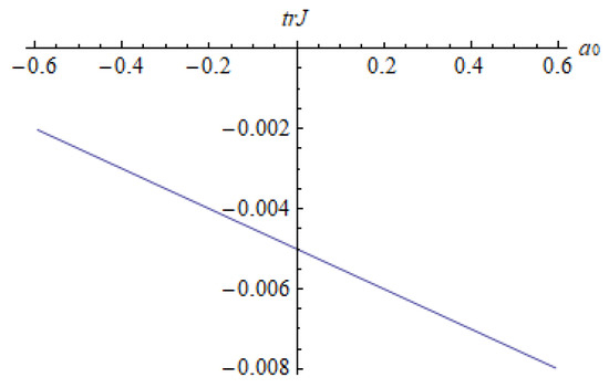 The variation of trJ given by Equation (75) and the variation of the discriminant D given by Equation (77) are plotted in Figure 4, Figure 5 and Figure 6, respectively. The trace of matrix J is decreasing with respect to the amplitude, and trJ is negative for all a0 [−0.59, 0.59].