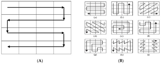 Scanning and its types, (A) Inverse S scanning, (B) Different types of scans.