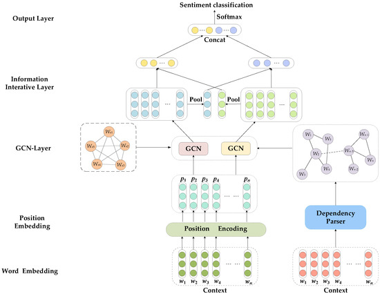 ASGCN [22] uses a GCN for the first time to obtain node information on the syntactic dependency tree and combines the attention mechanism for sentiment classification.