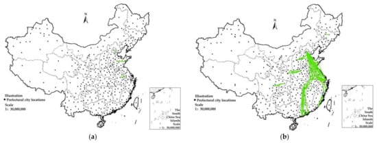 - Wang, L.; Liu, Y.; Sun, C.; Liu, Y. Accessibility impact of the present and future high-speed rail network: A case study of Jiangsu Province, China. J. Transp. Geogr. 2016, 54, 161–172. [Google Scholar] [CrossRef]