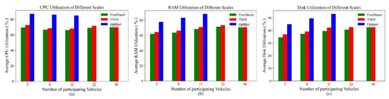 Utilization of different resources. (a) Utilization of CPU cores. (b) Utilization of RAM. (c) Utilization of disk.