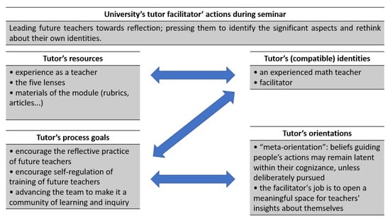 Likewise, these five lenses must not only be useful for future teachers but must also be considered by the tutor to guide seminar discussions and, therefore, to encourage student reflection. These five lenses also address the didactic suitability criterion of Breda et al. [] in the following relations: epistemic (mathematical content), cognitive (student’s mathematical thinking), interactional (classroom discourse), mediational (tasks), affective and ecological (role of the teacher).
