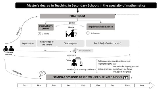 Our study was carried out during the 2021–2022 academic year in the Practicum module of this master’s in the mathematics specialty of a Spanish university, and, specifically, we focus on the case of two future teachers who share a university tutor (Figure 2).