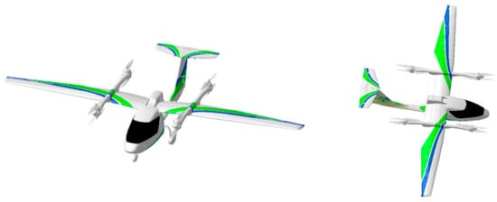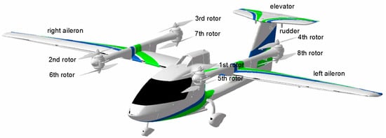 With the concept of urban air mobility (UAM), the emerging class of electric vertical takeoff and landing vehicles (eVTOLs) is becoming a hot point for aerospace engineers [1,2]. Since the configuration possesses a hovering system characterized by multi-rotors and a high-lift wing body of fixed-wing configurations, eVTOLs can vertically take off and land, which leads to fewer airport requirements, and it allows them to cruise with high energy efficiency by exploiting aerodynamic lift [3].