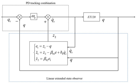 The structure of the pitch angular rate channel LADRC controller is given in Figure 6, which consists of a linear extended state observer and a PD tracking combination.