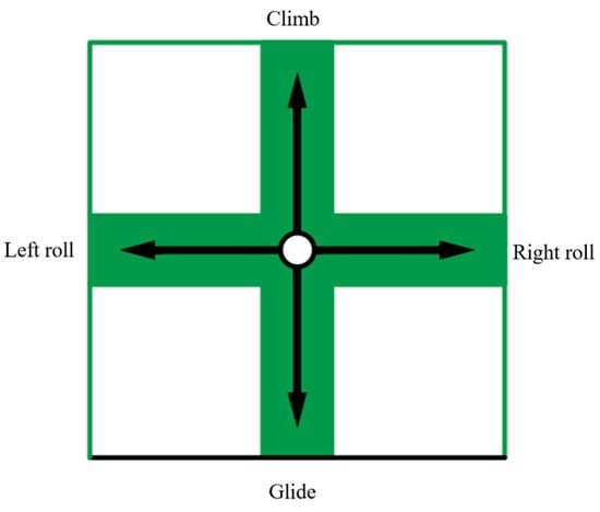 The control stick is able to be pushed forward or backward and left or right, both for multi-rotors and fixed-wings. A reasonable stick design should keep in mind the common sense of the pilots, including for helicopters and fixed-wings. The stick responses are specially designed, as depicted in Figure 7, and the control outputs of the control stick are given in Table 3.