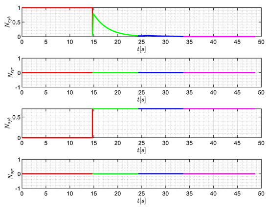 Then, if is positive, the eigenvalues of are −, which let the LESO converge with a frequency of . With the time-scale separation principle, is designed as , which is four times . The control parameters in each channel are given in Table 2: