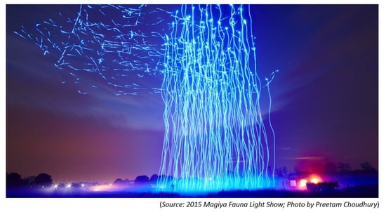 - Intel. Drone100 Performed by Ars Electronica Futurelab. 2015. Available online: https://inteldronelightshows.com/ (accessed on 1 December 2021).