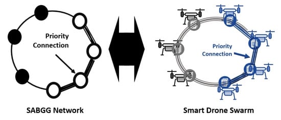 Unlike other conventional blockchain networks, BGG-based networks do not have a reward system but use the verifiable random function (VRF) for generating new blocks [27,28]. Alternatively, the weighted-mean-subsequence-reduced (WMSR) algorithm is designed for achieving resilient consensus in decentralized sensor networks and smart robot swarms [15,29,30,31,32]. By applying the VRF or WMSR on the EVM (Ethereum virtual machine), all drones in the swarm network shall have nearly equal chances to generate the blocks without or only with minimal computational power. The mechanism for protecting a smart drone swarm network is identical to the SABGG. The governance in a swarm network is driven by the decision making parameters that include a prior time before catching more than half of the total drones by an attacker.