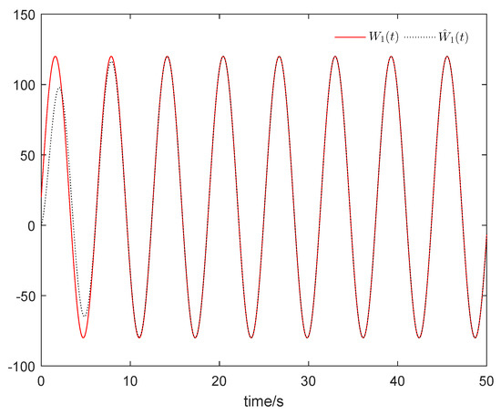 It should be pointed out that among the abovementioned results, the external disturbance is not considered completely. Unfortunately, there are still many deficiencies in the current research, and in practice this is not the case. For the robust stabilization problems of the nonlinear systems, many methods have been reported, e.g., [15,16]. However, the obtained results are only robust, i.e., the disturbance is not asymptotically estimated by the observers or filters. More importantly, the robust control and disturbance rejection problems in the abovementioned works are mainly solved by the linear matrix inequalities (LMIs). It is well known that the stability conditions that are derived by the LMIs are only sufficient conditions and often result in conservative conclusions. Recently, the uncertainty and disturbance estimator (UDE)-based control method [17,18,19,20,21,22,23] emerged as an effective method to deal with the model uncertainty and external disturbance, and it has been widely applied in various systems. However, for the periodically external disturbance , where A and C are unknown constants, the proposed filter in [17] cannot asymptotically estimate such disturbance, so the obtained results are only robust, or practical. It is important to propose a suitable filter that can asymptotically estimate the periodically external disturbance. Inspired by the UDE-based control method, this paper shall propose a suitable filter in Section 3.
