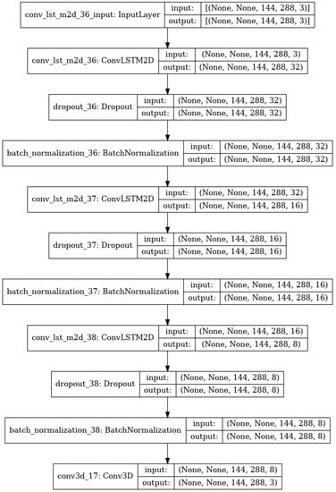 - Available online: https://keras.io/api/layers/recurrent_layers/conv_lstm2d/ (accessed on 9 September 2022).