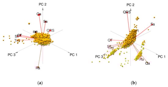 Another technique used in medicine is principal component analysis (PCA). This method of analysis is used to detect early stages of diseases and to diagnose the cardiac health of patients [25,26,27,28,29,30]. This technique was used in the present study to evaluate the differences between ECG features in different states and to detect mental fatigue symptoms.