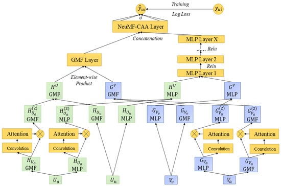 - He, X.; Liao, L.; Zhang, H.; Nie, L.; Hu, X.; Chua, T.-S. Neural collaborative filtering. In Proceedings of the 26th International Conference on World Wide Web, Perth, Australia, 3–7 April 2017. [Google Scholar]