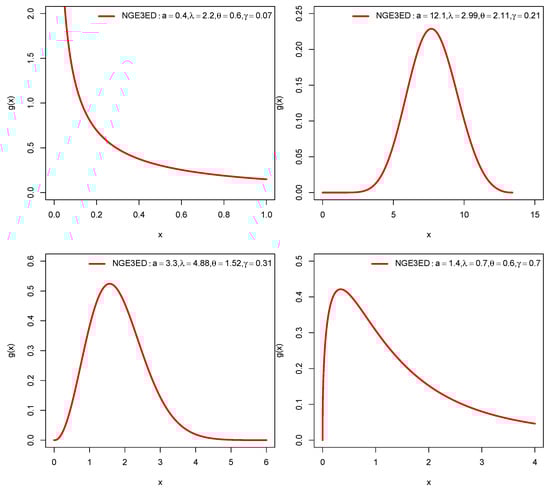 We presently characterize NGE3ED by considering the exponential as a BLD with cdf and pdf . Then, cdf and pdf of NGE3ED are, respectively,