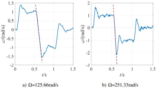 With the feedback gain fixed, introduce ATD reference trajectory generator and falESO disturbance observer to constitute ATD-falESO angular speed controller. For the ATD reference trajectory generator, set , , . The curves of corresponding and are shown in Figure 23.