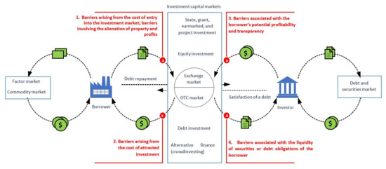 The spread and application of the tokenization technology in the implementation of transactions in the OTC financial market significantly lower barriers to investment attraction and placement. These barriers can be divided into four groups. The first group comprises barriers arising from the cost of entry into the investment market, as well as barriers involving the alienation of property and profits. For small- and medium-sized businesses and start-ups, it is practically impossible to attract investment by issuing shares and bonds, whereas investment in exchange for an ownership share proves to be unappealing. The only remaining option is bank lending; however, even this variant is considered to be overregulated and is often unavailable for the considered categories of borrowers. The issuance of tokens for debt obligations and securities to be placed on a digital platform for crowdinvesting purposes is becoming an affordable investment attraction option.