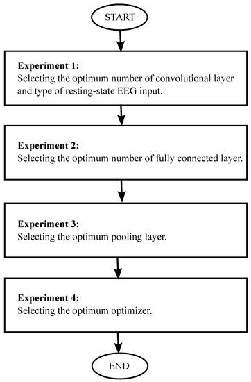Current interest in implementing CNN for EEG-based biometric applications is high, as shown in [28,32,33,34,35,36,37,38,39]. Recent works are summarized in Table 1. It can be seen that the CNN architectures in these studies are relatively shallow (not more than ten layers). However, a shallower architecture with limited convolutional layers might not be effective in extracting finer features. Fine features can support the training of CNNs with more information, making them more robust against different individuals. Furthermore, several works do not present the application of batch normalization, even though it has proven effective in improving the performance of CNN architectures. In addition, task-free paradigm EEG signals are under-explored with respect to the use of CNNs, even though they are was easier and more convenient to implement.