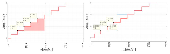 The shadow zone in Figure 9 is defined as A n e t . The pulse used to replace the missing levels has an amplitude “h” (four levels in the example) and a base “b” calculated as indicated in Expression (2).